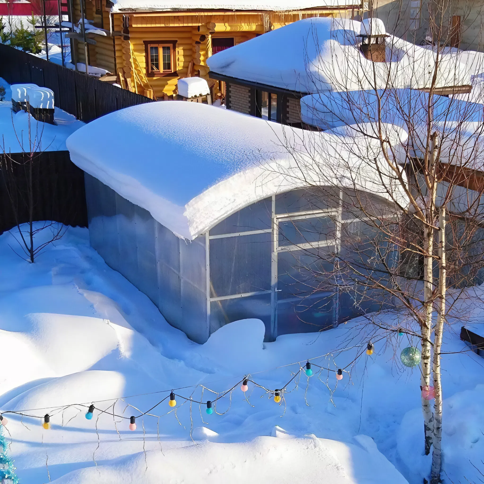 Odległość między łukami wynosi zaledwie 1 metr oraz grubość metalu w 1mm oznacza, że rama jest bardzo wytrzymała na rózne warunki pogodowe bądź to mocny wiatr, deszcz albo obciążenie śniegiem wynoszące około 180 kg/m2 (co odpowiada warstwie śniegu o grubości około 30-40 cm), co oznacza, że dobrze zainstalowana szklarnia może wytrzymać wszelkie opady śniegu i deszczu.