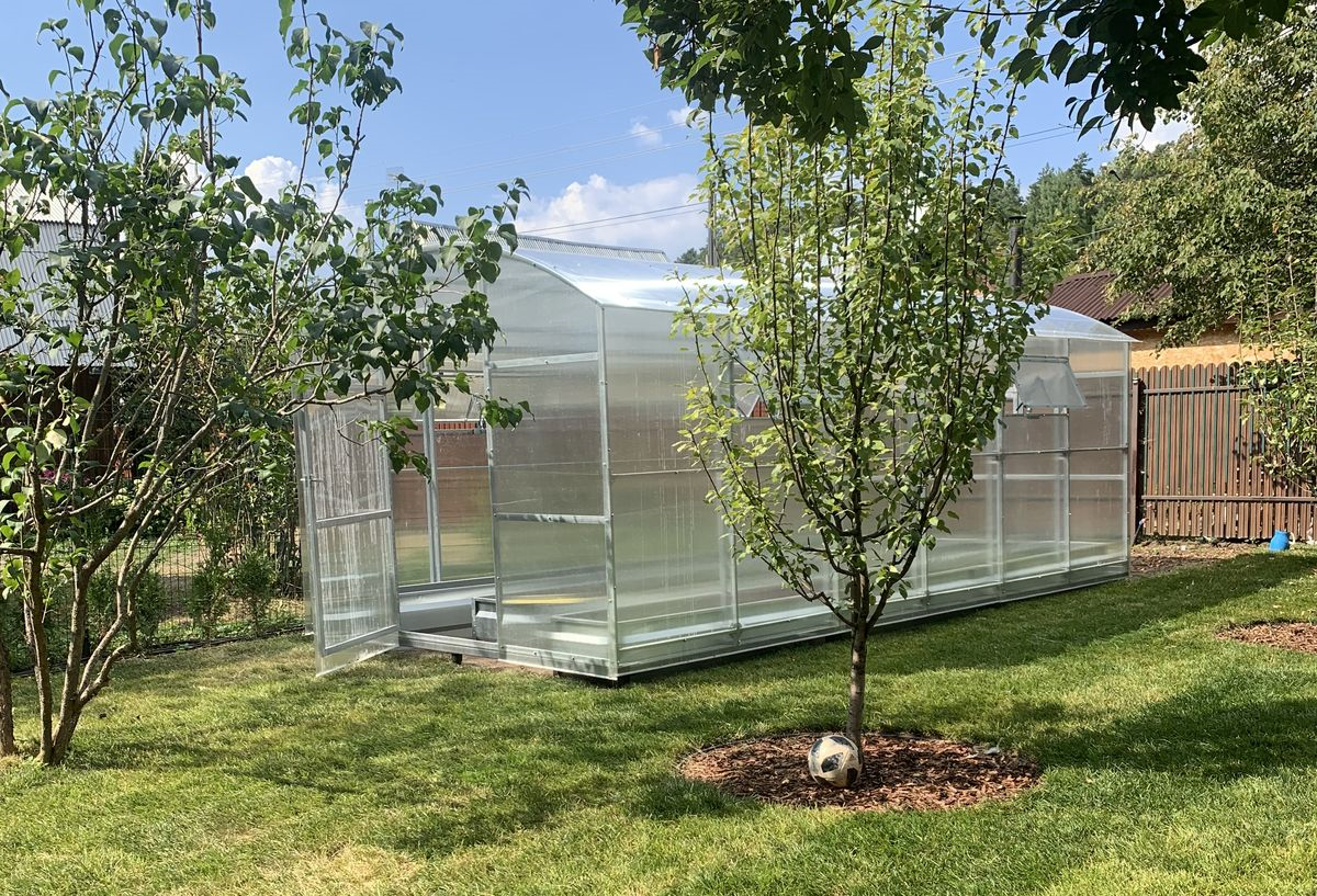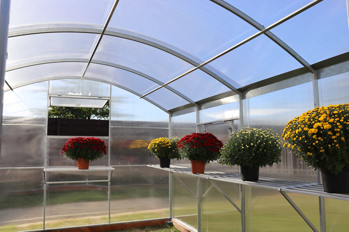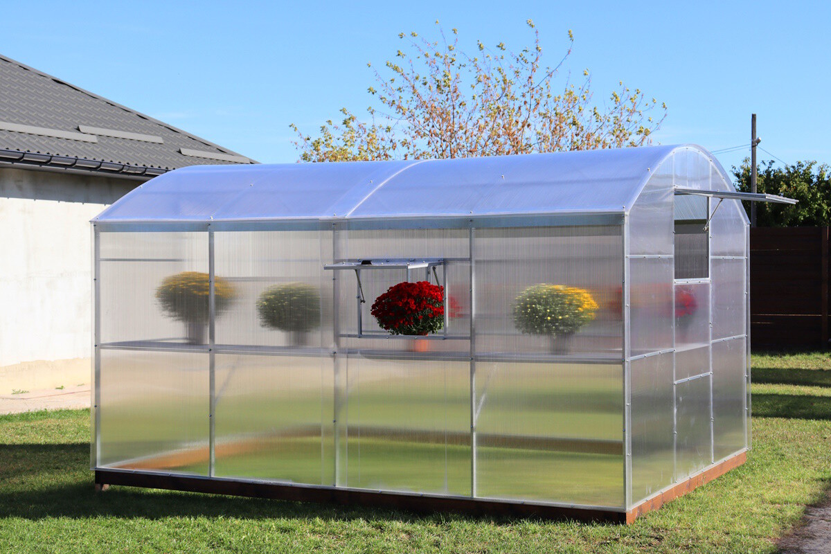 Szklarnia jest dostarczana z poliwęglanem o grubości 4 mm lub 6mm, które są wystarczająco mocne i odporne na ciepło dla szklarni „sezonowej”.